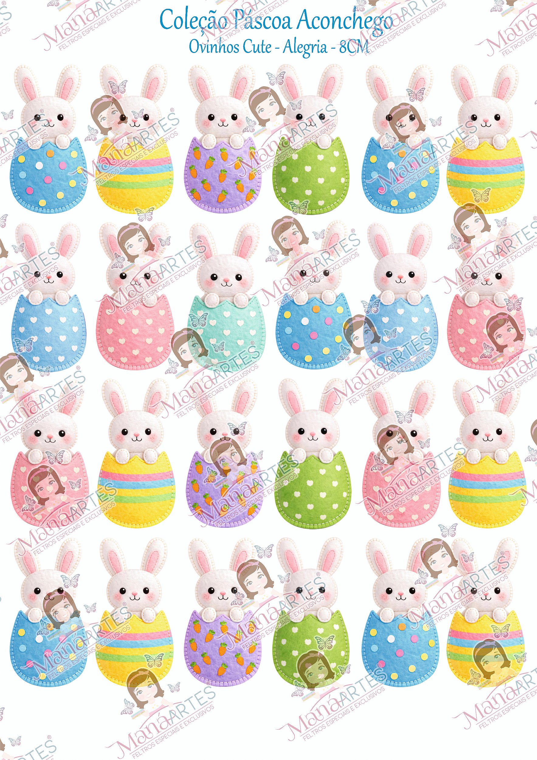 Os painéis são ideais para recorte e montagem de lembrancinhas, enfeites, guirlandas e peças criativas para a Páscoa.