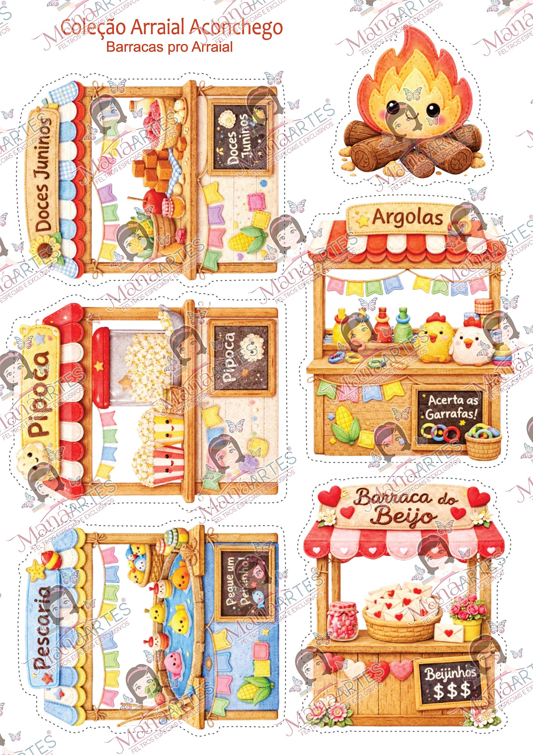O Scrapfelt Barracas Arraial Aconchego traz cenários completos, ricos em detalhes e com aquele estilo fofinho que faz qualquer peça parecer profissional — mesmo sendo feita com carinho no seu ateliê 💛
