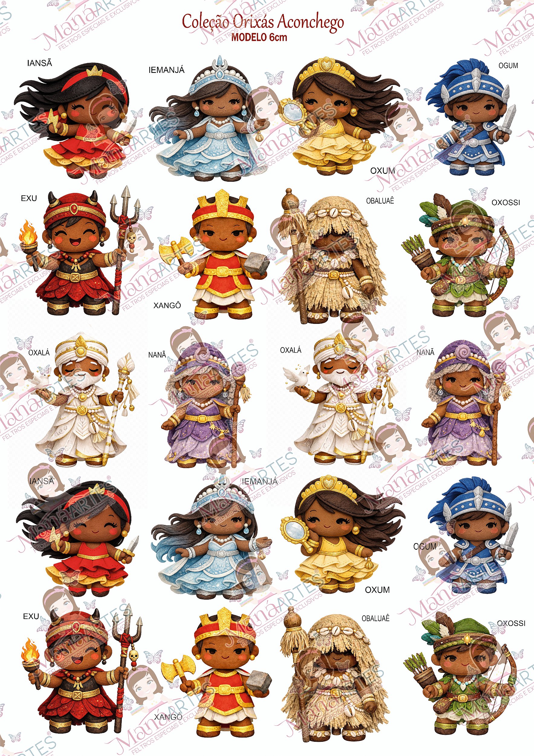 A versão 6cm da Coleção Orixás Aconchego foi desenvolvida para aplicações menores sem perder a riqueza de detalhes.