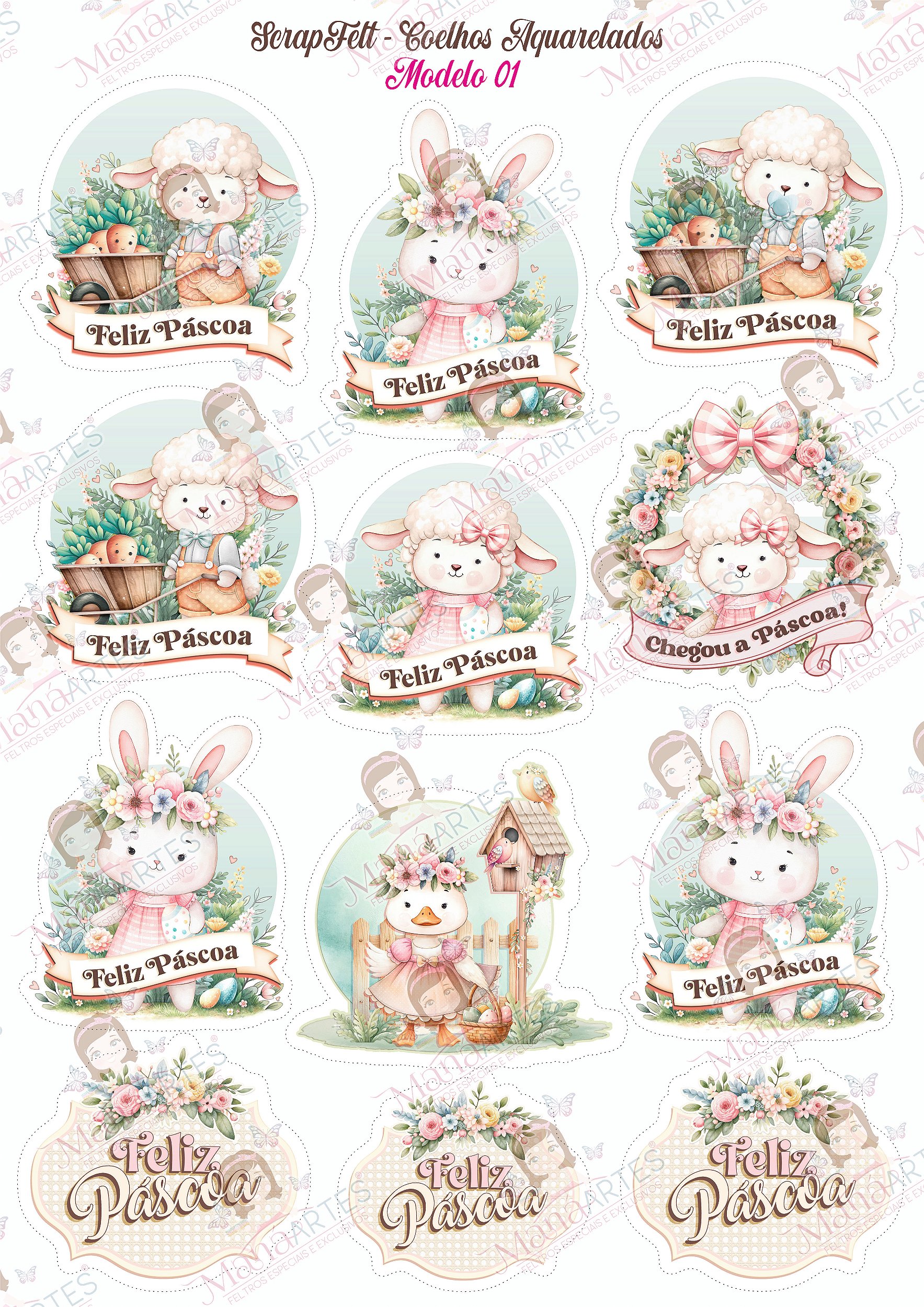 SCRAPFELT COELHOS AQUARELADOS - MODELO 01